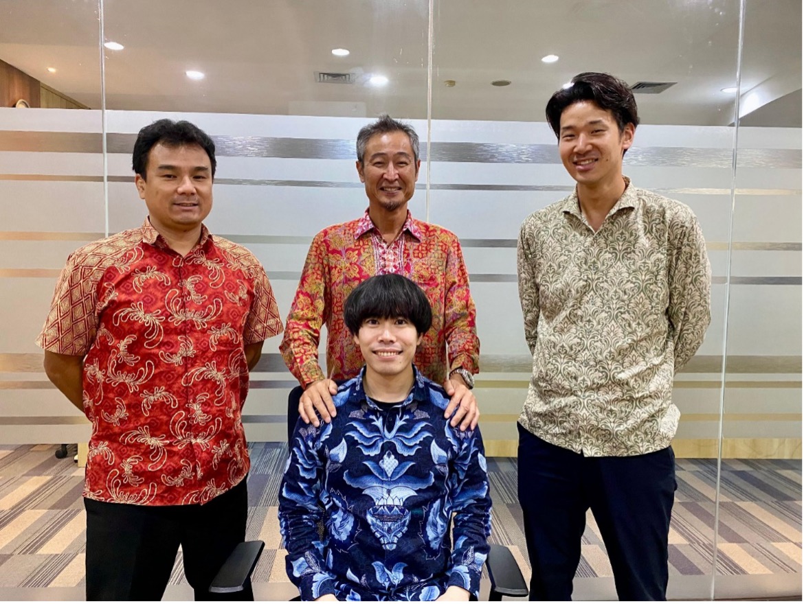 PT. Puradelta Lestari Tbkにて大変お世話になった方々。上段左から、石坂錬太郎PDLマーケティングマネージャー、上原敦PDL副社長、田中寛人PDLシニアマネージャー、下段は筆者,